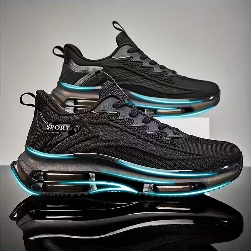 حذاء رياضي رجالي بوسادة هوائية - حذاء رياضي شبكي يسمح بالتهوية مع امتصاص للصدمات، تصميم خفيف الوزن منخفض العنق مناسب للصالة الرياضية والجري والملابس